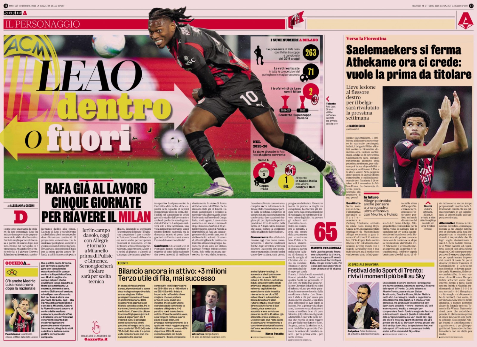 As Gazzetta dello Sport (seen below) writes this morning, though, this offers a chance for someone else to prove themselves, and Athekame believes it could be his. The paper writes that the Swiss defender wants his first start to round off a fantastic week.