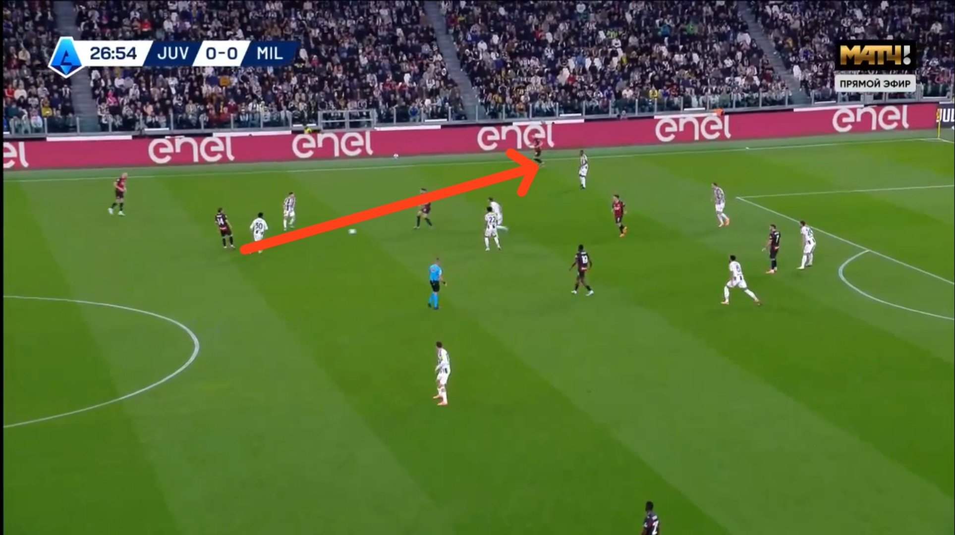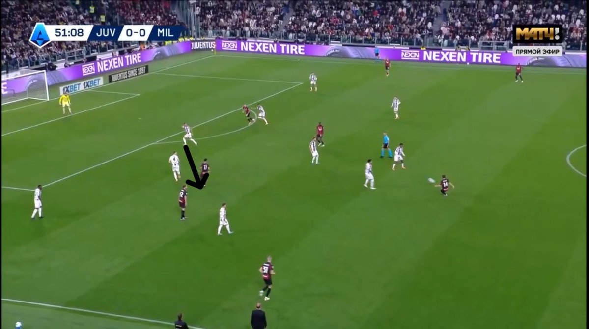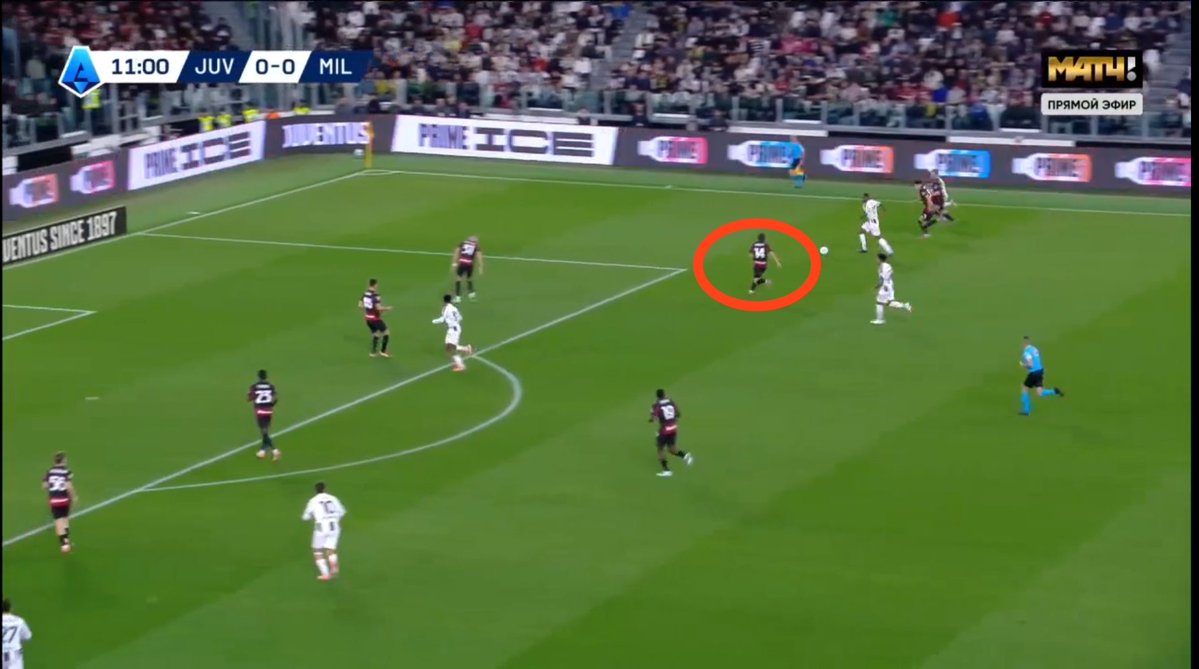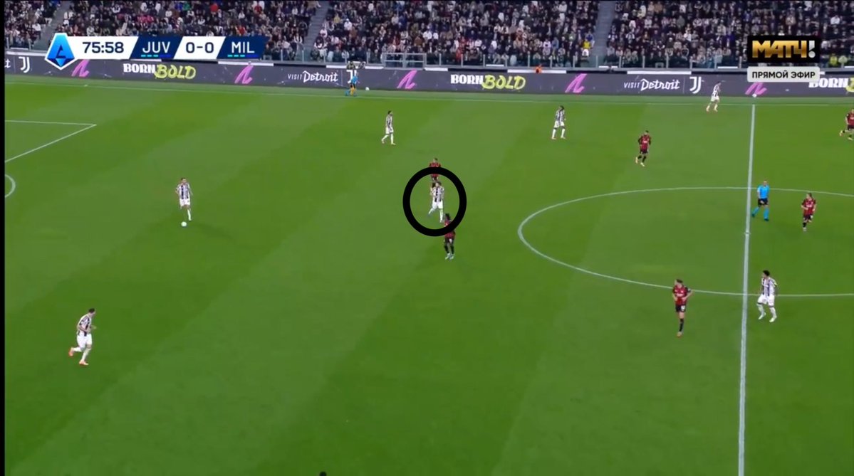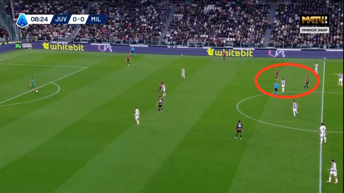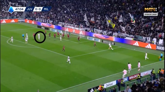 In the second half, Juventus’ best chance came from a corner when Gatti was completely unmarked. Milan used a zonal marking system, and Gatti begins his run from outside the box and runs in, a ricochet falls into his feet.