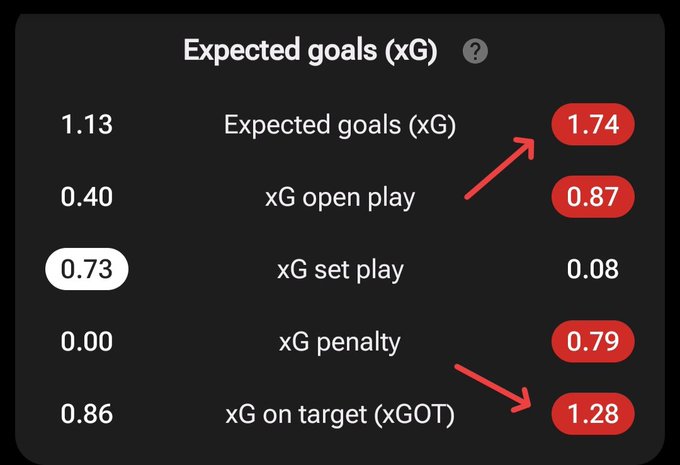 What do the stats say? Milan had an xG of 1.74, but their xGOT, or the quality of the shots Milan played made were lower than the xG. Simply put, the quality of shots of Milan was entirely poor.