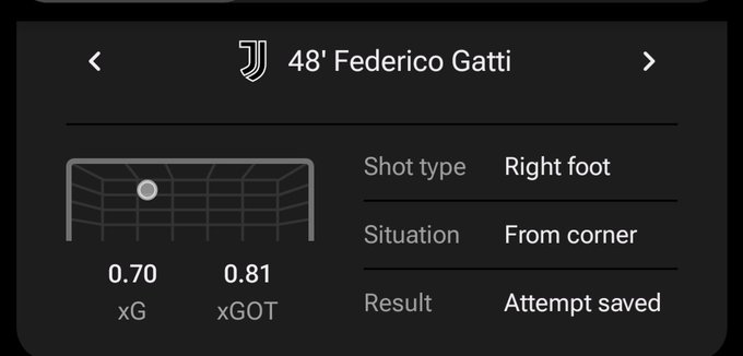 Something positive is how good Maignan’s save was. The xGOT for Gatti’s shot was 0.81, which means out of 100 shots on target, almost 81 would go in. And Milan did not concede, showing that Maignan has kept a very good clean sheet.